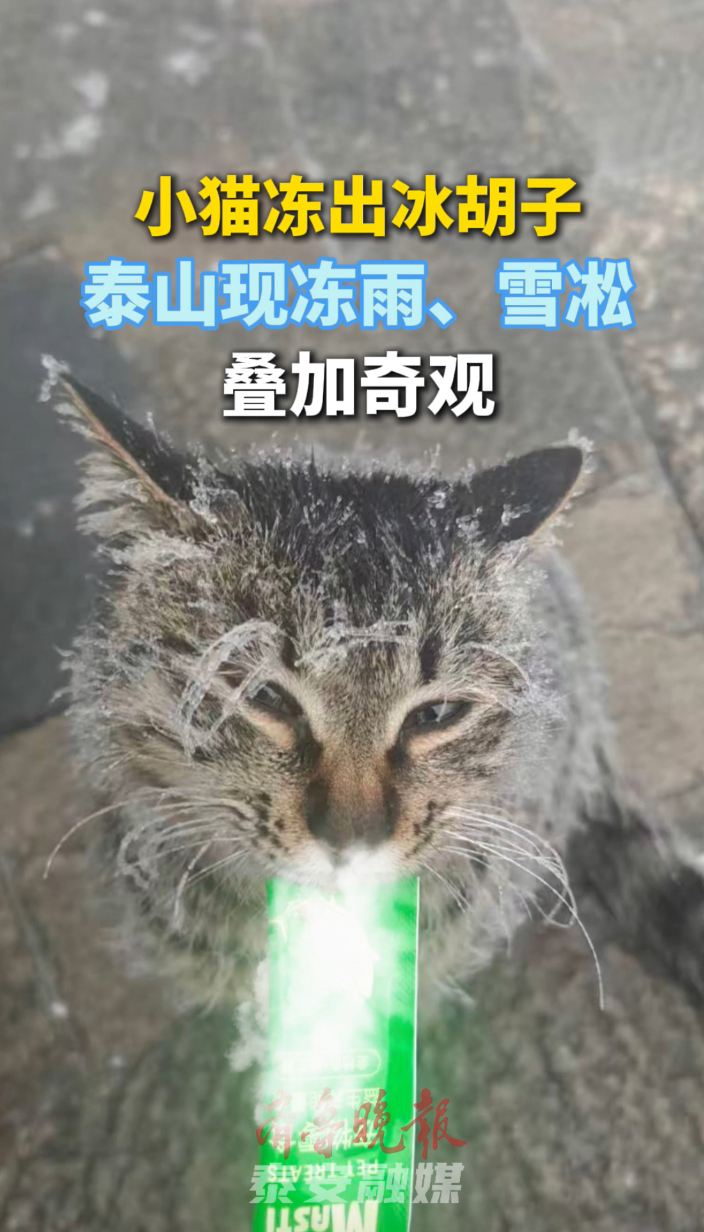 果然视频丨小猫冻出冰胡子,泰山现冻雨、雪凇叠加奇观