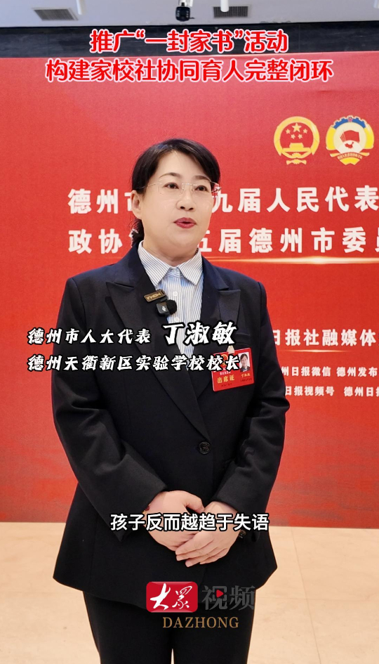 德州两会丨丁淑敏代表:推广“一封家书”活动,构建家校社协同育人完整闭环
