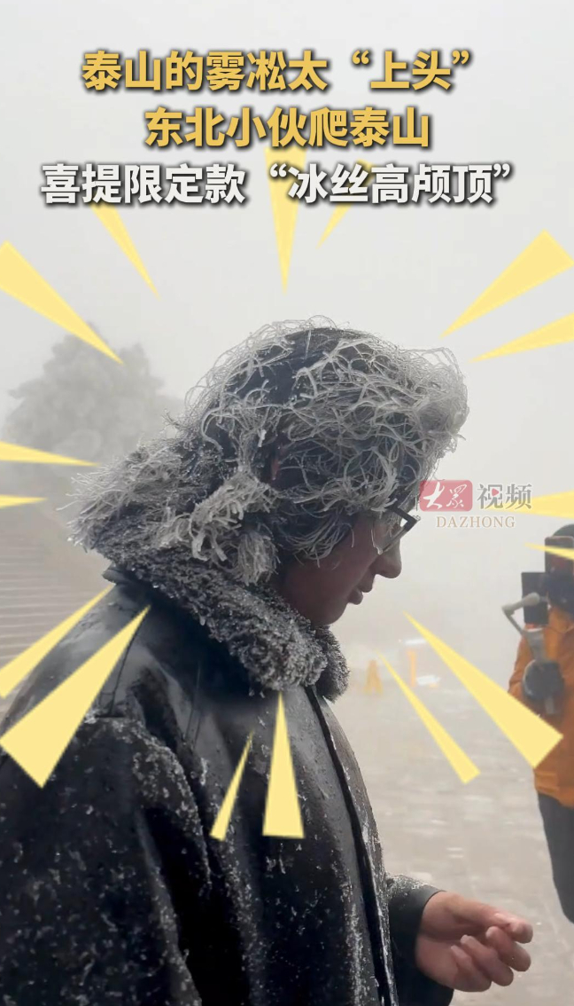 泰山的雾凇太“上头”!东北小伙爬泰山,喜提限定款“冰丝高颅顶”!