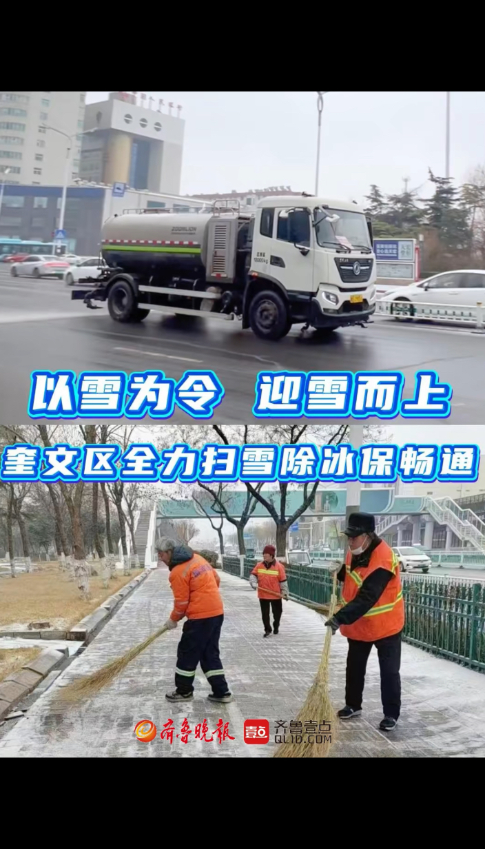 果然视频|以雪为令,迎雪而上!奎文区全力扫雪除冰保畅通齐鲁晚报·齐鲁壹点客户端 19:37原创1月18日,潍坊市区迎来低温降雪天气。奎文区第一时间启动清雪除冰应急预案,全力保障市民出行安全。为预防道路结冰,早8点开始,区园林环卫处出动700余人,撒布机13台,小型手扶式清雪除冰车20台,撒布融雪剂100余吨,对辖区重点部位、主干道、路口、人行横道等开展全面清雪防冰作业。(来源:奎文发布) 齐鲁晚报·齐鲁壹点 胡晓雪