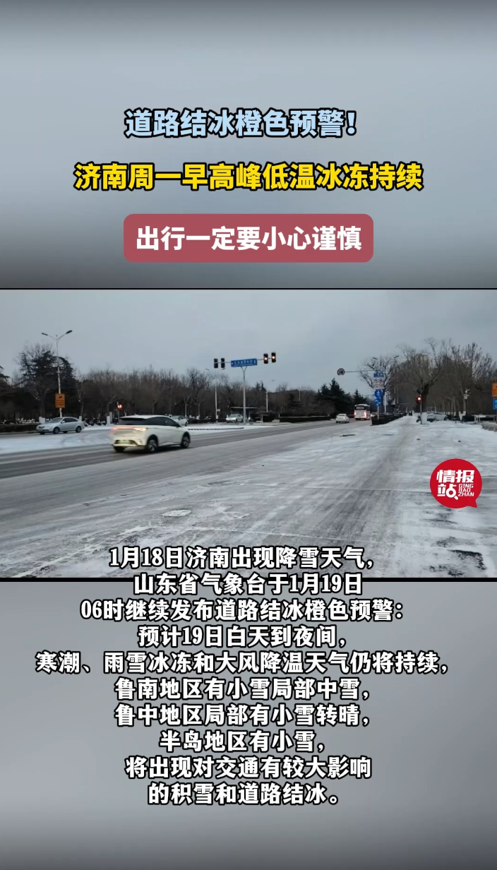 天气情报站|道路结冰橙色预警!济南周一低温持续,出行小心谨慎
