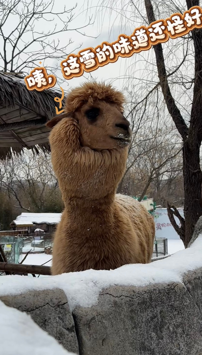 羊驼们在雪地上悠闲地踱步,时而低头啃食被雪覆盖的青草,时而抬起头来,好奇地看着周围的雪景。鸵鸟们则兴奋地奔跑着,长长的双腿在雪地上留下一串串深深的脚印。斑马们也不甘示弱,它们成群结队地在雪地里嬉戏,黑白相间的条纹与白雪形成了鲜明的对比,格外引人注目。