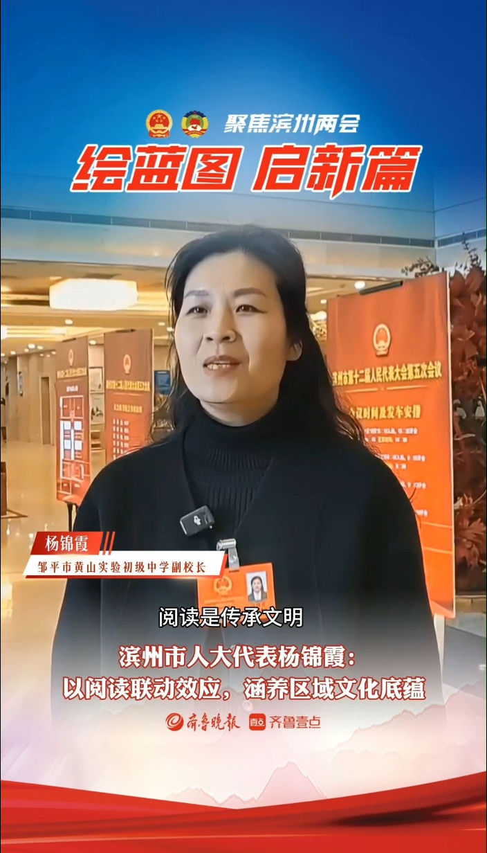 滨州市人大代表、邹平市黄山实验初级中学副校长杨锦霞:以阅读联动效应,涵养区域文化底蕴。
