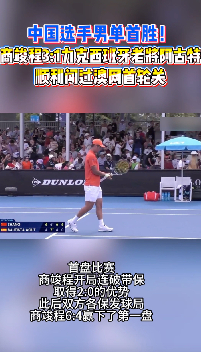 果然视频|商竣程3:1力克西班牙老将阿古特,闯过澳网首轮关 14:09 原创齐鲁晚报·齐鲁壹点客户端 微信扫码扫码下载客户端1月19日,2026澳网展开正赛第二个比赛日的争夺。男单首轮,中国小将商竣程以6:4、6:7(2)、6:4、6:0击败西班牙37岁老将阿古特,第三次闯过澳网首轮关。(齐鲁晚报·齐鲁壹点 怀晓)