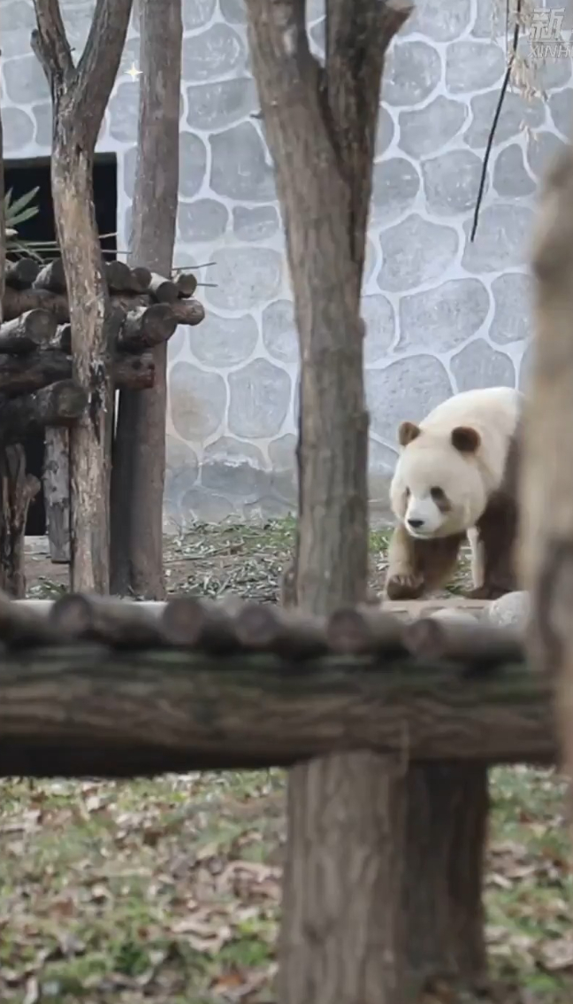 在位于陕西西安的秦岭大熊猫研究中心,棕色大熊猫七仔正在享受冬日时光,一起感受“国宝”的惬意瞬间吧。