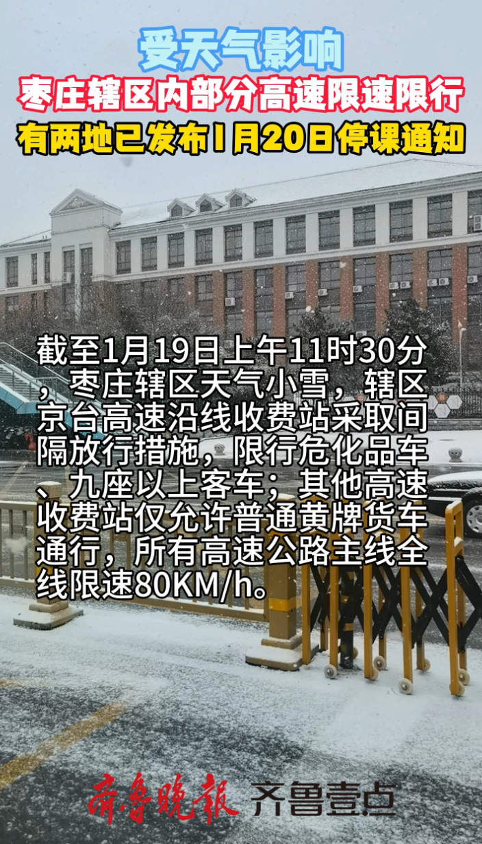 枣庄辖区内部分高速限速限行,已有两地发布1月20日停课通知