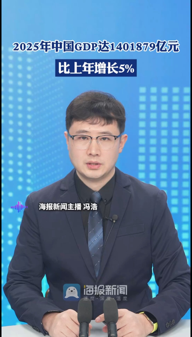 主播说丨2025年中国GDP达1401879亿元,比上年增长5% 15:20 原创大众新闻·海报新闻 微信扫码扫码下载客户端1月19日,国家统计局公布2025年国民经济运行情况数据,初步核算,全年国内生产总值1401879亿元,按不变价格计算,比上年增长5.0%。分季度看,一季度国内生产总值同比增长5.4%,二季度增长5.2%,三季度增长4.8%,四季度增长4.5%。(海报新闻综合澎湃新闻 编辑 冯浩 黄晓荣)