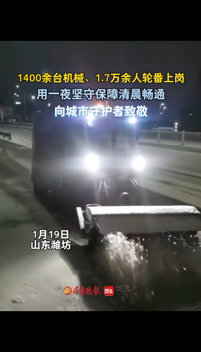 果然视频|用一夜坚守保清晨畅通,向城市守护者致敬齐鲁晚报·齐鲁壹点客户端 16:10原创1月18日晚间至19日清晨。潍坊城管人一夜未停,1400余台机械、1.7万余人轮番上岗,用一夜坚守保障清晨的道路畅通和出行安全。 齐鲁晚报·齐鲁壹点 马小杰