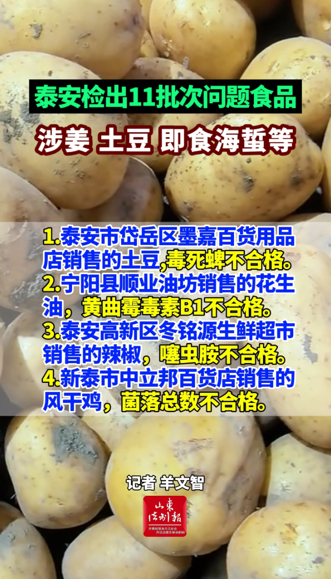 泰安检出11批次问题食品,涉姜、土豆、即食海蜇等