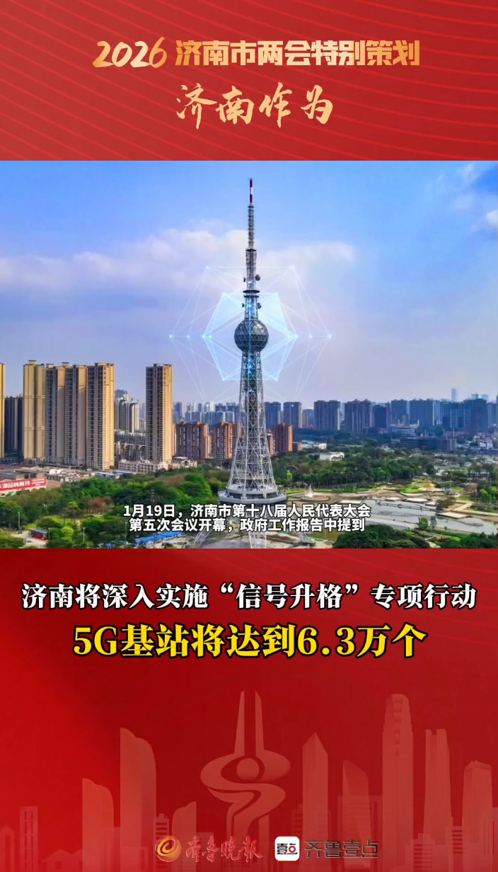 果然视频|2026年济南5G基站将达到6.3万个齐鲁晚报·齐鲁壹点客户端 17:22原创1月19日,济南市第十八届人民代表大会第五次会议开幕,政府工作报告中提到,济南将深入实施“信号升格”专项行动,持续提升“双千兆”网络覆盖水平,加快5G-A商用部署和网络升级演进,5G基站数量达到6.3万个。(齐鲁晚报·齐鲁壹点 管悦 王栋 见习记者 冯子芯)