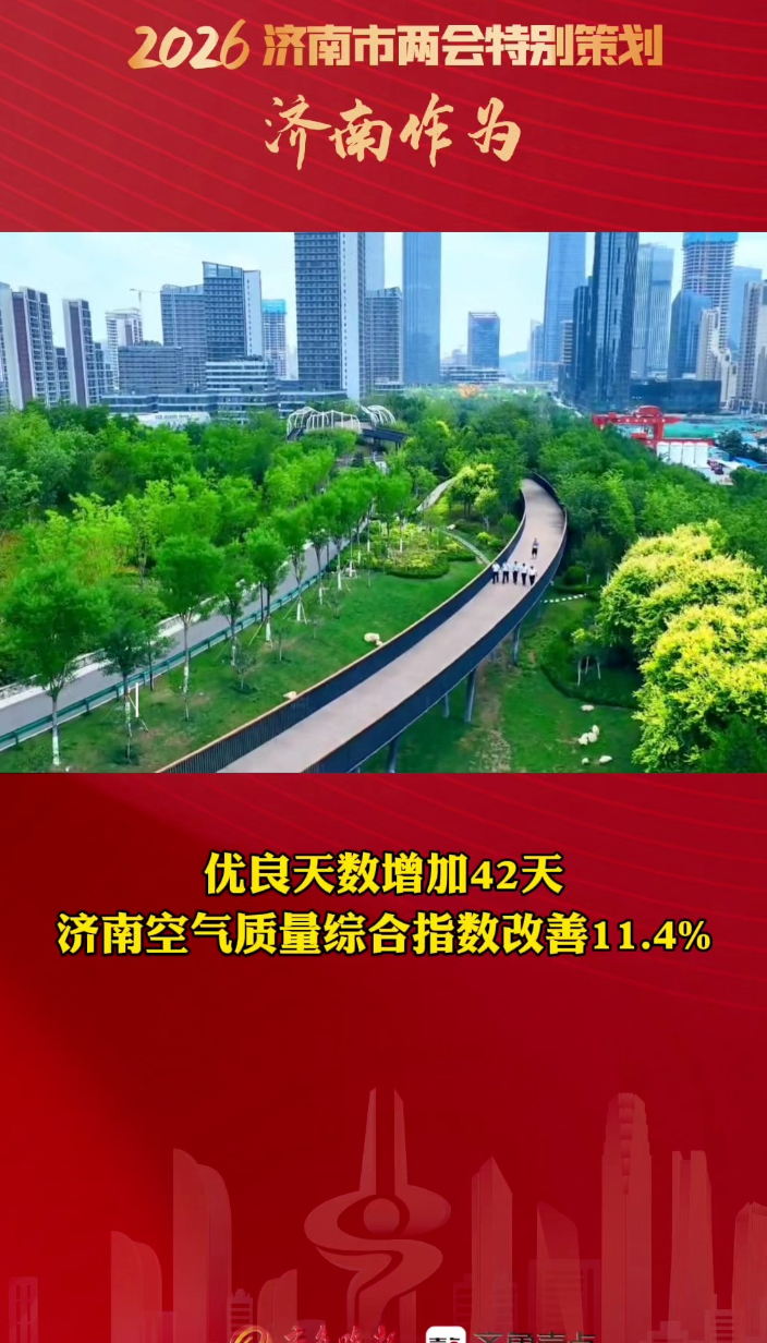 果然视频|济南空气质量综合指数改善 11.4%齐鲁晚报·齐鲁壹点客户端 17:26原创1月19日,济南市第十八届人民代表大会第五次会议开幕,政府工作报告中提到,济南坚决打好蓝天、碧水、净土保卫战,空气质量综合指数改善11.4%,优良天数增加42天、居全省首位。完成5条重点河流417处入河排污口整治,国控断面水质指数居全省首位。(齐鲁晚报·齐鲁壹点记者 管悦 史安琪 王帮栋 见习记者 冯子芯)
