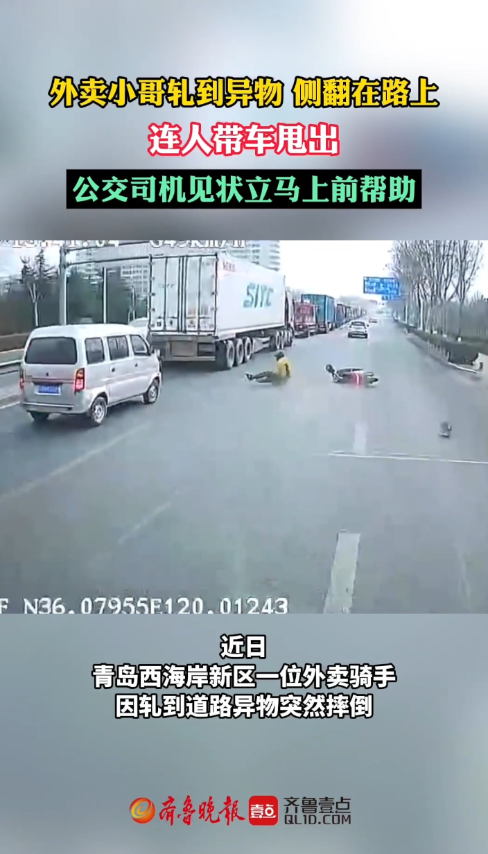果然视频丨前方骑手摔倒!驾驶员与乘客齐心救助齐鲁晚报·齐鲁壹点客户端 17:59原创近日,青岛西海岸新区一位外卖骑手因轧到道路异物突然摔倒,青岛真情巴士1083路驾驶员郝为波见状立即安全停车,与热心乘客合力将外卖员扶至路旁安全区域。经确认骑手无大碍后,郝为波与热心乘客返回车厢。 (齐鲁晚报·齐鲁壹点 徐润杰)