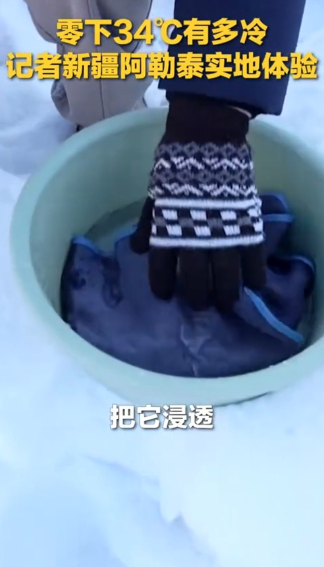 毛巾能站住,香菜一捏即碎……记者带你体验新疆阿勒泰-34℃寒冷天气。今年首场寒潮影响仍将持续,关注天气,注意防护!