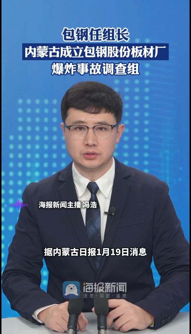 主播说丨包钢任组长,内蒙古成立包钢股份板材厂爆炸事故调查组 10:20 原创大众新闻·海报新闻 微信扫码扫码下载客户端据内蒙古日报1月19日消息,包钢股份板材厂爆炸事故发生后,内蒙古自治区党委、政府高度重视,迅速成立调查组,自治区党委副书记、自治区人民政府主席包钢任组长,自治区党委常委、自治区人民政府常务副主席黄志强任副组长,成员由自治区相关部门、包头市和有关专家组成。目前,调查组已赴现场开展工作。(海报新闻综合 内蒙古日报 编辑 冯浩 黄晓荣)