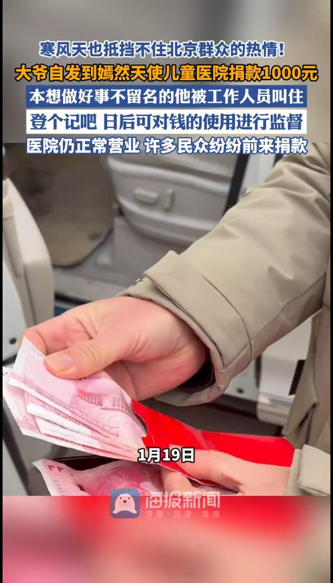 主播说丨寒风天也抵挡不住北京群众的热情!大爷自发到嫣然天使儿童医院捐款1000元