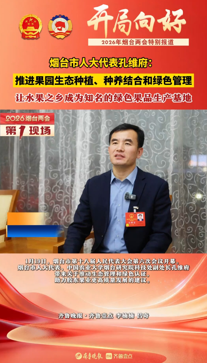 果然视频|烟台市人大代表孔维府:推进果园生态种植和绿色管理齐鲁晚报·齐鲁壹点客户端 11:38原创1月19日,烟台市第十八届人民代表大会第六次会议开幕。烟台市人大代表、中国农业大学烟台研究院科技处副处长孔维府带来关于推动生态管理和绿色认证,助力胶东果业更高质量发展的建议。他认为,未来应该推进果园生态种植、种养结合和绿色管理,让水果之乡成为知名的绿色果品生产基地。(齐鲁晚报·齐鲁壹点 李楠楠 吕奇)