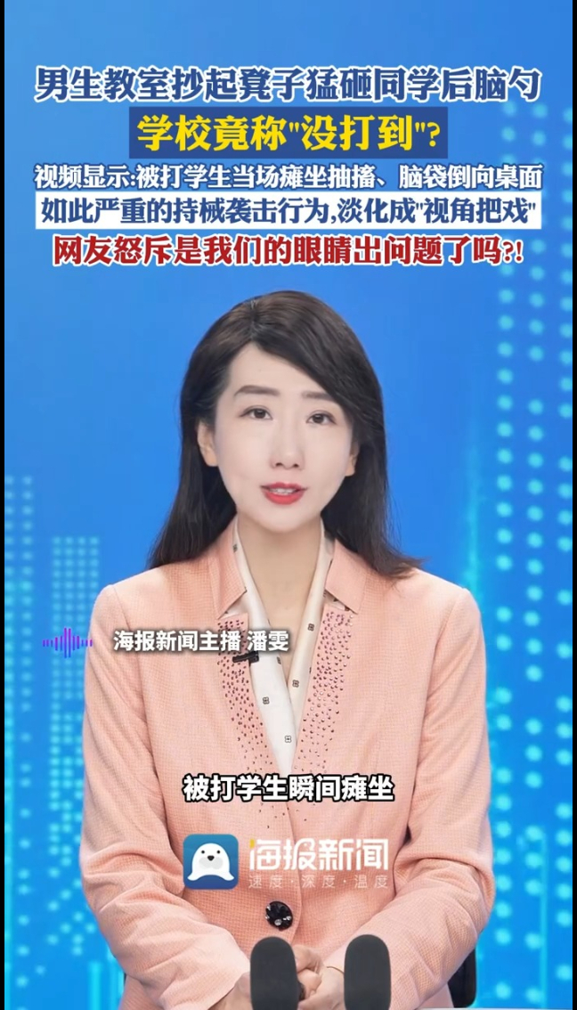 主播说丨男生教室抄起凳子猛砸同学后脑勺,学校竟称“没打到”?网友怒斥是我们的眼睛出问题了吗?!