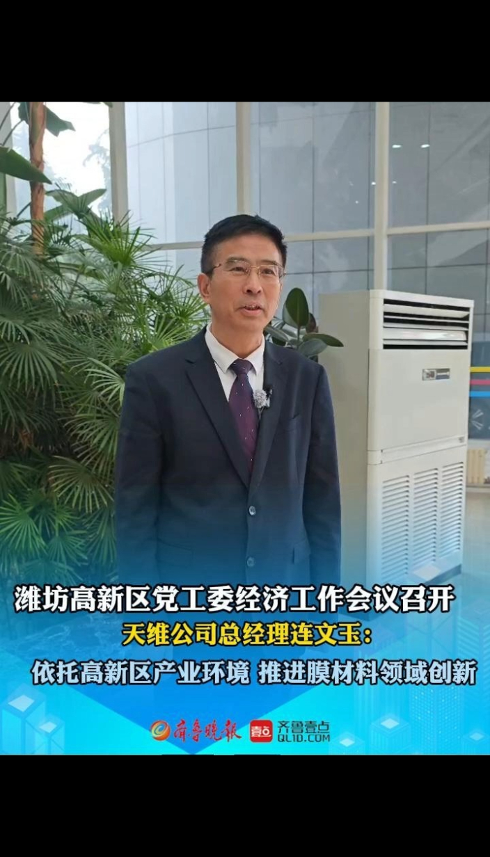 果然视频|连文玉:依托潍坊高新区产业环境,推进膜材料领域创新齐鲁晚报·齐鲁壹点客户端 15:09原创1月19日,潍坊高新区党工委经济工作会议召开。山东天维膜技术有限公司总经理表示深受鼓舞,将紧密围绕国家高质量发展方向与高新区产业布局,加快模材料研发与产业化进程,为区域高质量发展贡献力量。 齐鲁晚报·齐鲁壹点 王佳潼