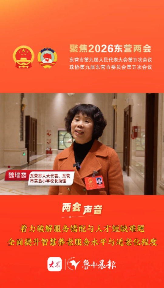 两会声音 | 东营市人大代表、东营市实验小学校长助理魏瑞霞:着力破解服务错配与人才短缺难题,全面提升智慧养老服务水平与适老化程度