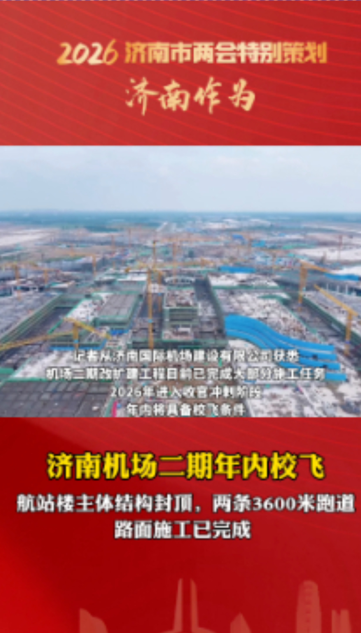 果然视频|航站楼主体结构封顶,济南机场二期年内校飞齐鲁晚报·齐鲁壹点客户端 17:16原创记者从济南国际机场建设有限公司获悉,机场二期改扩建工程目前已完成大部分施工任务,2026年进入收官冲刺阶段,年内将具备校飞条件。(齐鲁晚报·齐鲁壹点 王帮栋)