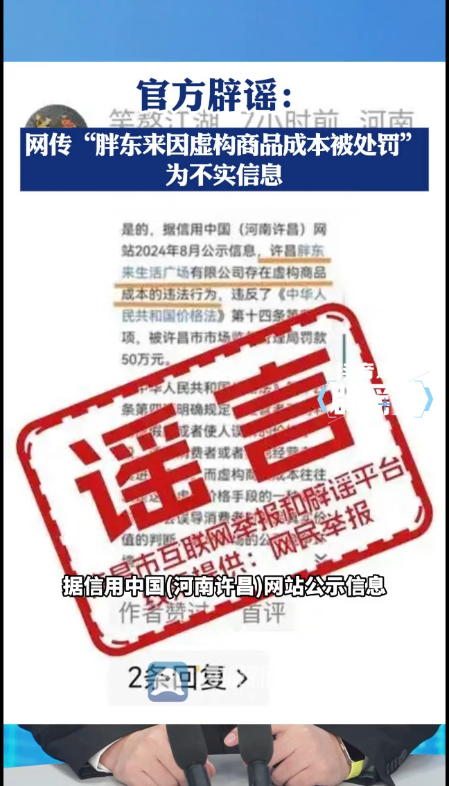 主播说丨官方辟谣:网传“胖东来因虚构商品成本被处罚”为不实信息