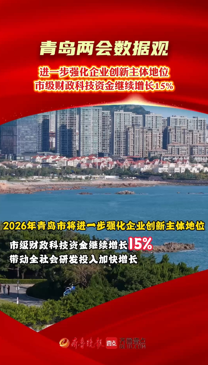 青岛两会数据观丨2026年将培育独角兽等创新型企业1500家齐鲁晚报·齐鲁壹点客户端 18:35原创2026年,青岛市进一步强化企业创新主体地位。市级财政科技资金继续增长15%,带动全社会研发投入加快增长。支持企业牵头组建创新联合体,企业主导的科技攻关占比超过90%。新增省级以上企业技术中心、工程研究中心20家。深化财政科技股权投资改革,加大对企业的研发补助,支持企业发行科创债。培育专精特新、瞪羚、独角兽等创新型企业1500家。 (齐鲁晚报·齐鲁壹点 曹婧雯 徐润杰 高雅洁)