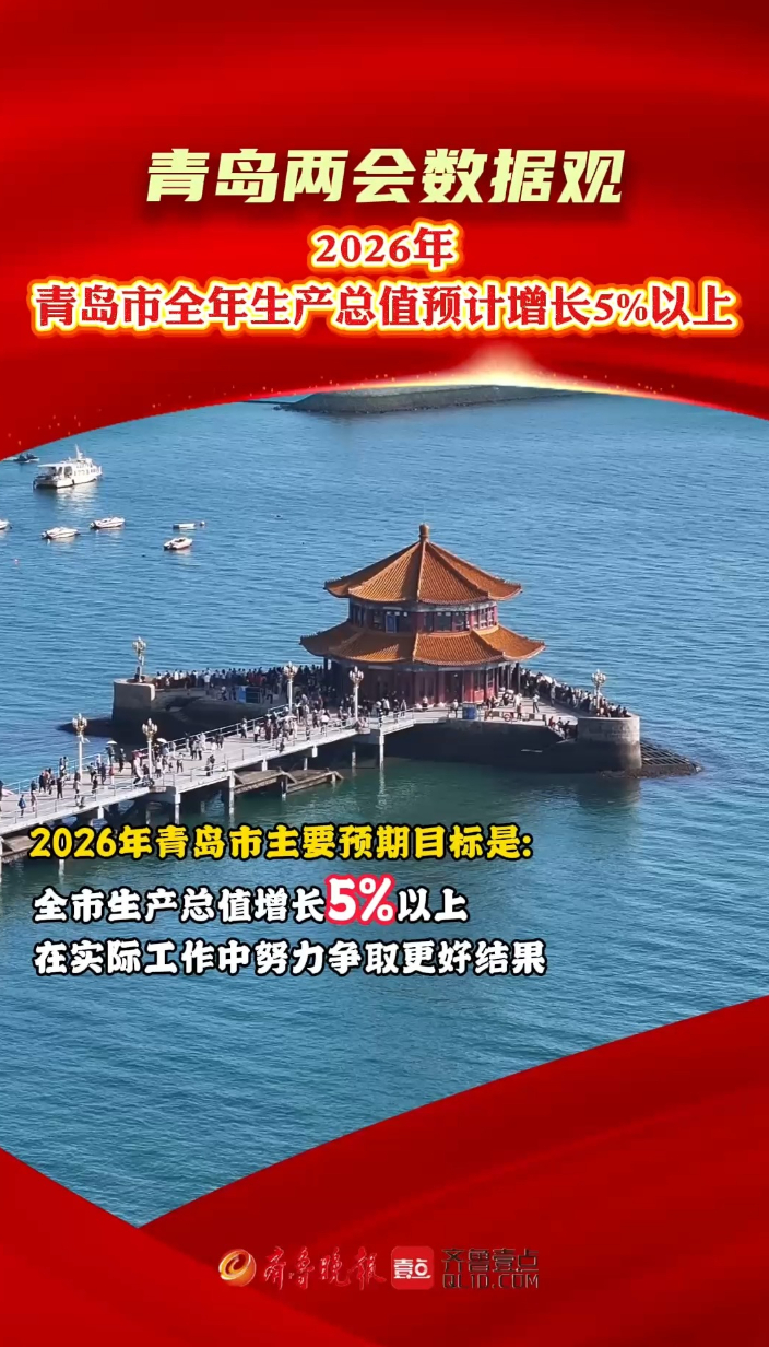 青岛两会数据观丨预计增长5%以上!2026年生产总值目标确定齐鲁晚报·齐鲁壹点客户端 18:35原创2026年青岛市主要预期目标是:全市生产总值增长5%以上,在实际工作中努力争取更好结果;一般公共预算收入增长2%,居民收入增长与经济增长同步;居民消费价格保持合理水平;全面完成降碳节能减排约束性指标和环境质量改善目标。 (齐鲁晚报·齐鲁壹点 曹婧雯 徐润杰 高雅洁)