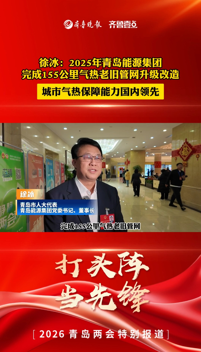 果然视频·代表说丨青岛完成155公里气热老旧管网升级改造齐鲁晚报·齐鲁壹点客户端 昨天21:59原创2026年1月20日,青岛市第十七届人民代表大会第五次会议开幕,来自各行各业的人大代表积极建言献策。青岛市人大代表、青岛能源集团党委书记、董事长徐冰表示,2025年青岛能源集团完成155公里气热老旧管网升级改造,26个热源站互联互保,青岛市气热保障能力国内领先。 (齐鲁晚报·齐鲁壹点 曹婧雯 杨雪 刁明杰)