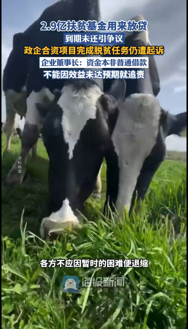 2.9亿扶贫基金用来放贷到期未还引争议!贵州御诺乳业2017年获2.9亿元扶贫产业子基金,约定使用15年、带动580户脱贫。企业虽完成脱贫任务,却未如期还款,被两家出资方诉至法院。