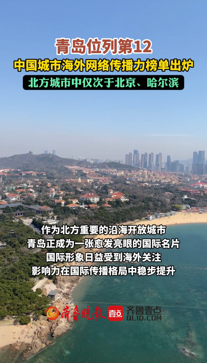 果然视频丨中国城市海外网络传播力榜单出炉,青岛位列第12齐鲁晚报·齐鲁壹点客户端 昨天13:32原创日前,《2025中国城市海外网络传播力建设报告》发布。青岛以73.54的综合指数位列全国第12名,在北方城市中仅次于北京和哈尔滨。作为北方重要的沿海开放城市,青岛正成为一张愈发亮眼的国际名片,国际形象日益受到海外关注,影响力在国际传播格局中稳步提升。 (齐鲁晚报·齐鲁壹点 高雅洁 实习生 张文钰)