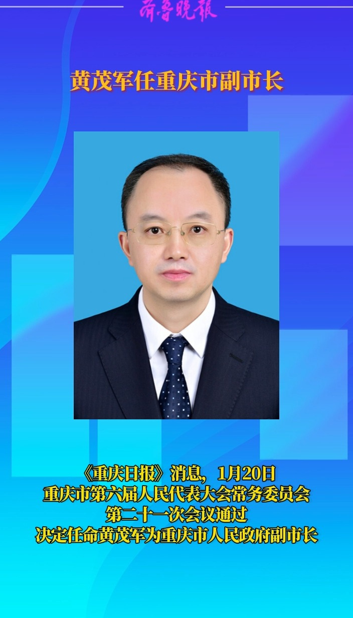 观政视频|黄茂军任重庆市副市长 01-21 原创齐鲁晚报·齐鲁壹点客户端 微信扫码扫码下载客户端《重庆日报》消息,1月20日重庆市第六届人民代表大会常务委员会第二十一次会议通过,决定任命黄茂军为重庆市人民政府副市长。