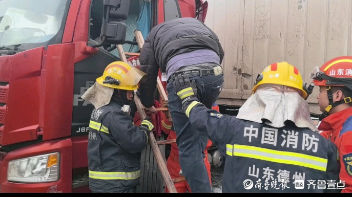 果然视频|货车撞上灯杆后侧翻,消防员搭梯救出被困男子齐鲁晚报·齐鲁壹点客户端 昨天15:58原创1月18日,德州,一辆货车失控撞上灯杆后侧翻在路中,有人被困。接到求助,德州消防铁营救援站立即到场处置,利用单杠梯搭建逃生通道,及时帮男子脱困,所幸其暂无大碍。 (齐鲁晚报·齐鲁壹点记者 尉伟 通讯员 宋文儒)