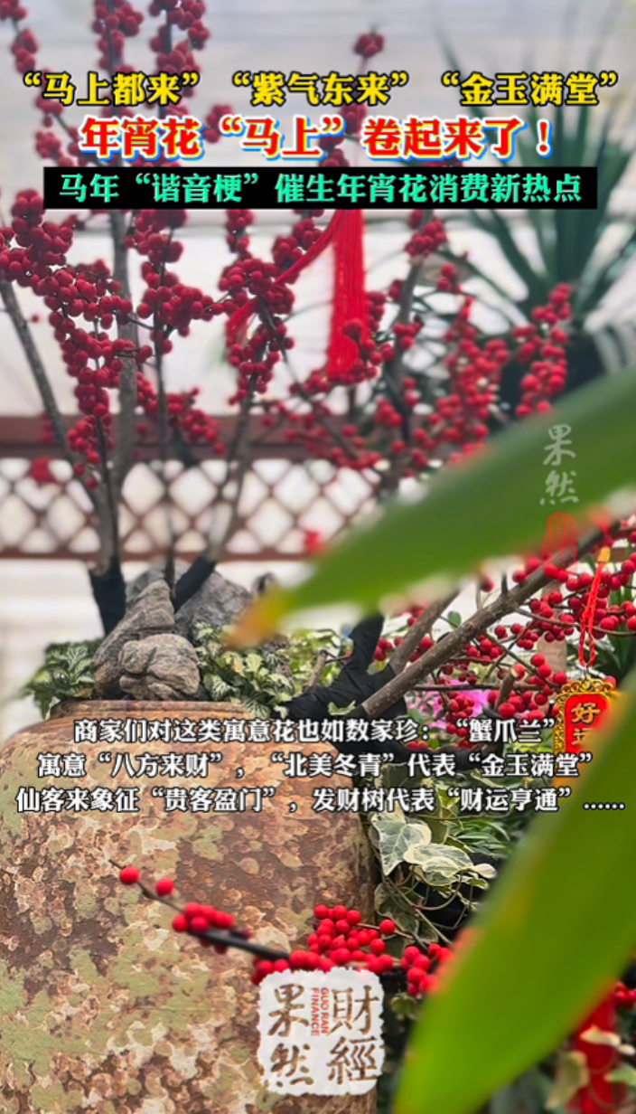 果然财经|“马上都来”“紫气东来”,年宵花“马上”卷起来!齐鲁晚报·齐鲁壹点客户端 昨天16:17原创记者注意到,今年年宵花市场的一大特色是“新年元素”的广泛应用。商家通过创意造型和吉祥命名,赋予花卉更多文化内涵。尤其是马年将至,与“马”相关的谐音与寓意被巧妙植入年宵花产品中,催生出新的消费热点。在济南百合花卉展销市场,“兜兰”成为年宵花新宠,因其“都来”谐音被赋予“紫气东来”(紫色兜兰)的新名字,还衍生出“马上都来”的马年专属寓意。