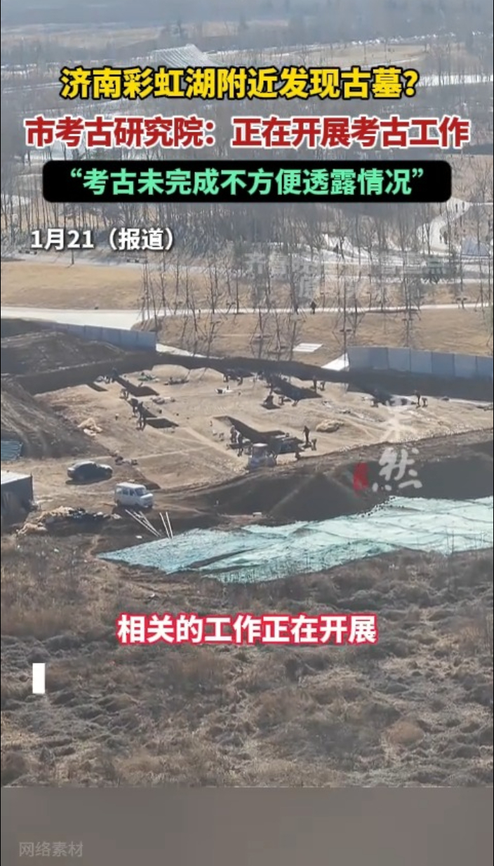 果然视频|济南彩虹湖旁发现古墓?市考古研究院:正开展考古工作齐鲁晚报·齐鲁壹点客户端 昨天16:14原创近日,有济南网友发现在彩虹湖公园东北角有部分土地开挖,部分土坑呈T字型,疑似发现古墓。1月21日,齐鲁晚报·齐鲁壹点记者致电济南市考古研究院文物保护处,相关工作人员表示,该地块目前正在开展考古研究工作,“目前考古未完成不方便透露情况”。(齐鲁晚报·齐鲁壹点爆料电话:0531-85193656;邮箱:405617016@qq.com)