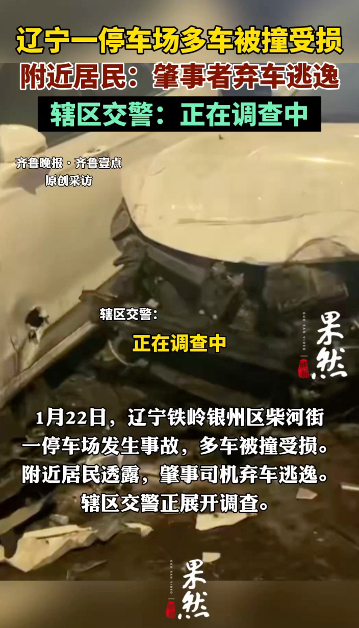 果然视频|辽宁一停车场多车被撞受损,辖区交警:正在调查齐鲁晚报·齐鲁壹点客户端 01-22原创1月22日,辽宁铁岭银州区柴河街一停车场发生事故,多车被撞受损。附近居民透露,肇事司机弃车逃逸。辖区交警正展开调查。(齐鲁晚报·齐鲁壹点 杜嘉文)