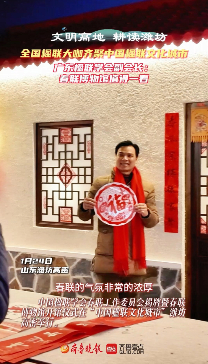 文明高地 耕读潍坊|全国楹联大咖齐聚中国楹联文化城市齐鲁晚报·齐鲁壹点客户端 01-25原创1月24日,中国楹联学会春联工作委员会揭牌暨春联博物馆开馆仪式在“中国楹联文化城市”潍坊高密举行。齐鲁晚报·齐鲁壹点 马小杰
