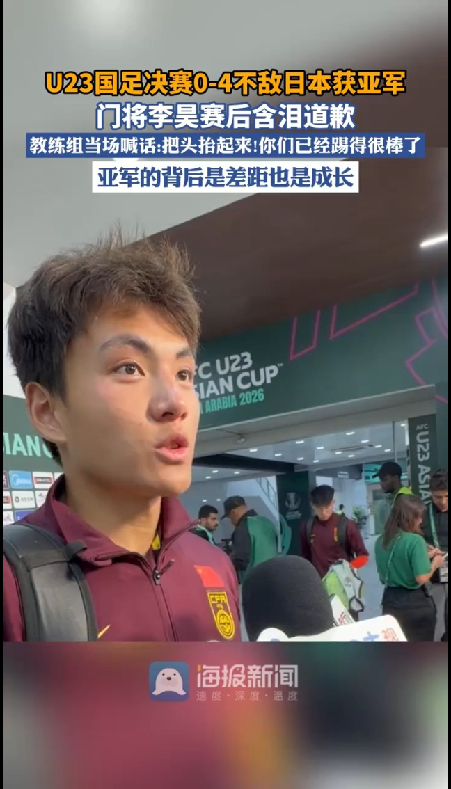 昨晚,U23亚洲杯决赛落下帷幕,中国U23队以0-4的比分不敌日本队,最终收获了宝贵的亚军。虽然与冠军失之交臂,但这是U23国足在亚足联顶级赛事中的历史最佳战绩。赛后,泪洒赛场的门将李昊在接受采访时自责并向球迷致歉。
