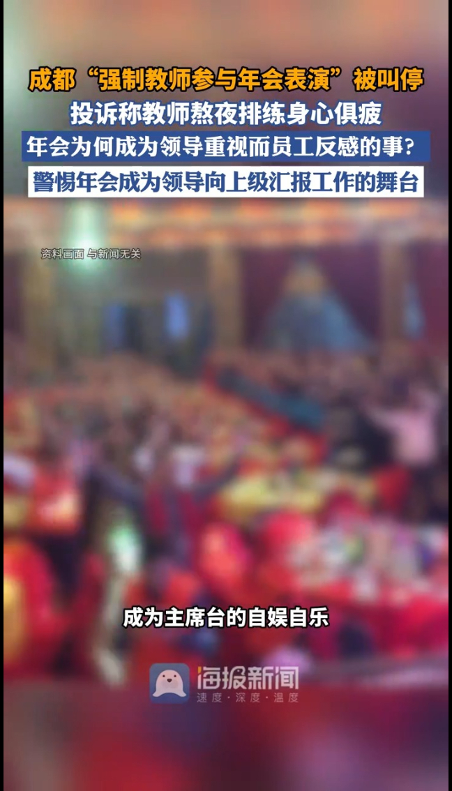 主播说丨成都“强制教师参与年会表演”被叫停,投诉称教师熬夜排练身心俱疲
