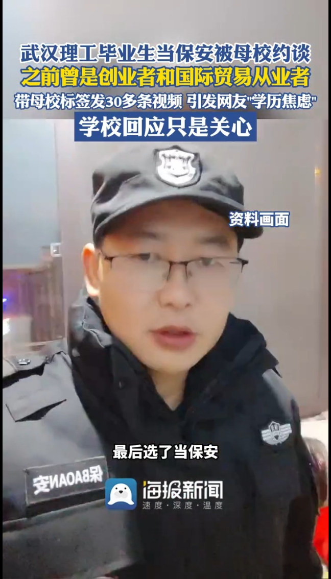 主播说丨武汉理工毕业生当保安被母校约谈引发网友“学历焦虑” ,学校回应只是关心
