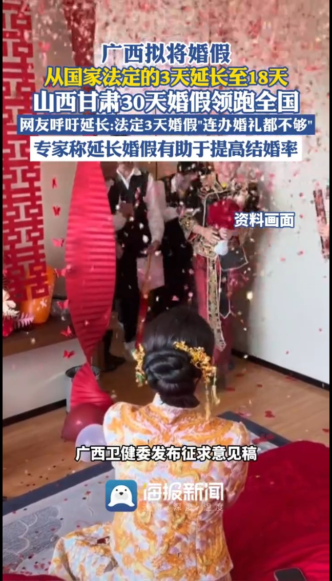 主播说丨广西拟将婚假从国家法定的3天延长至18天