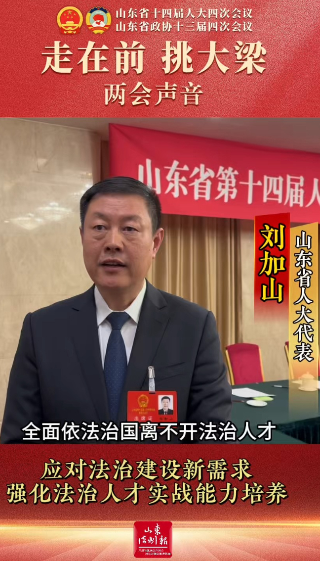 两会声音 | 刘加山代表:应对法治建设新需求,强化法治人才实战能力培养大众新闻·山东法制报 01-27原创【两会声音|省人大代表刘加山:应对法治建设新需求,强化法治人才实战能力培养】全面依法治国离不开法治人才。出席山东省十四届人大四次会议,山东海洋律师事务所主任、日照市律师协会会长刘加山代表,围绕我省法治人才培养工作提出建议。(大众新闻·山东法制报记者 郭延冉)