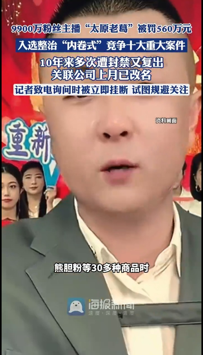 主播说丨9900万粉丝主播“太原老葛”被罚560万 入选整治“内卷式”竞争十大重大案件