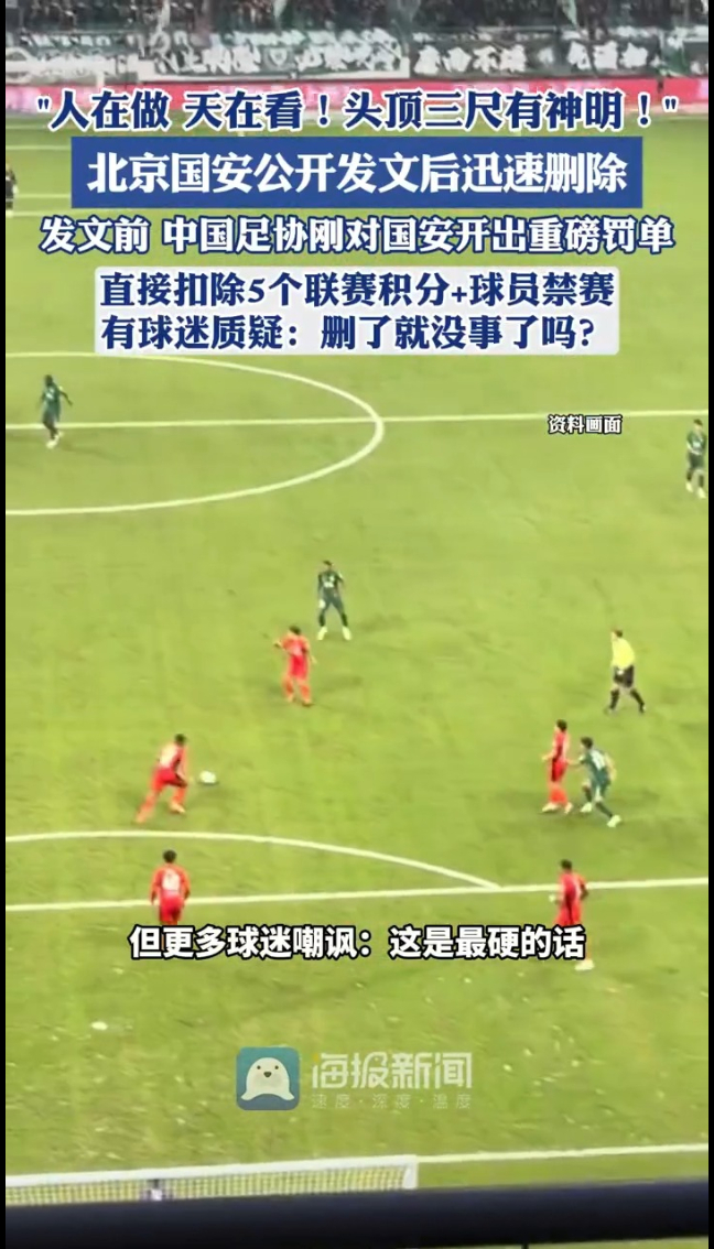 主播说丨“人在做,天在看!头顶三尺有神明!” 北京国安公开发文后迅速删除