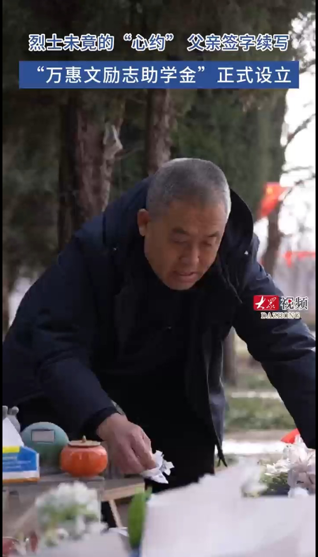 1月26日上午,东营市广饶县烈士陵园里,万东明俯身轻语,仿佛儿子仍在身旁。几小时后,在西刘桥初级中学,他以儿子之名设立的“万惠文励志助学金”正式启动。一场跨越生死的爱心接力,就此展开。