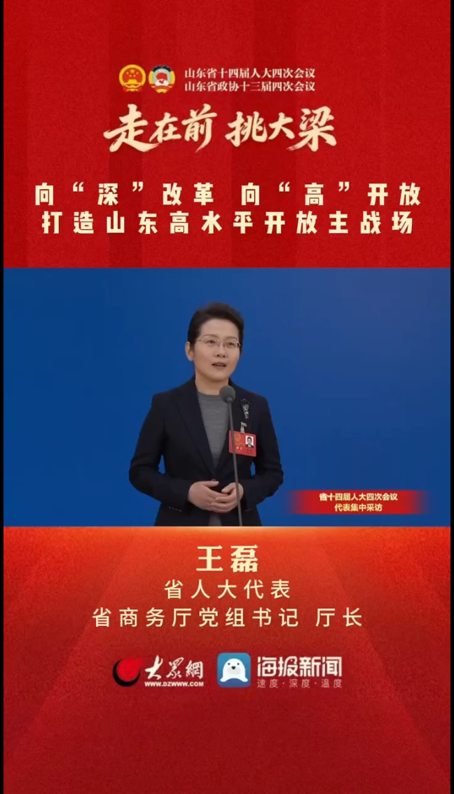 “新的一年,我们将聚焦‘扩大内需提振消费’和‘打造高水平对外开放新高地’两大重点,全面打响‘好品山东 商行天下’‘万企出海 鲁贸全球’‘至诚山东 近悦远来’三大品牌,稳步扩大制度型开放,全力确保全省‘十五五’商务发展良好开局。”王磊代表说。