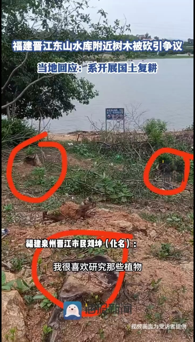 福建晋江东山水库附近树木被砍引争议 当地回应:系开展国土复耕