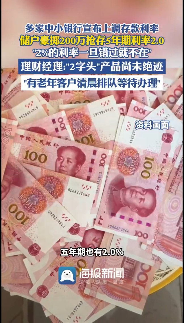 更刺激的是,杭州有银行惊现 “2字头” 存款产品!三年期利率高达2.1%,五年期也有2.0%。消息一出,全城躁动!有老年客户清晨就在银行门口排队,生怕抢不到。9点准时开抢,手机银行瞬间被挤爆,网络拥堵到有人根本存不上!