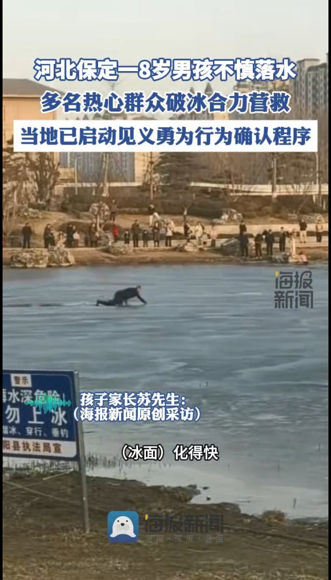 河北保定一8岁男孩不慎落水 多名热心群众破冰合力营救