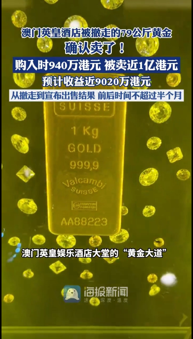 主播说 | 澳门英皇酒店被撤走的79公斤黄金,确认卖了!购入时940万港元 被卖近1亿港元 预计收益近9020万港元