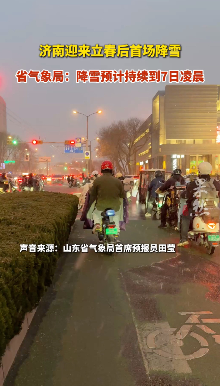 果然视频|济南迎来立春后首场雪,省气象局:预计持续到7日凌晨齐鲁晚报·齐鲁壹点客户端 02-06原创2月6日,济南迎来立春后首场降雪。据山东省气象局首席预报员田莹介绍,山东本轮降雪于今日清晨开启,晨间降雪为冷流降雪,主要影响东营、潍坊一带;16时后降雪性质转为高空湿区影响下的降雪,当前降雪主要集中在德州、滨州、济南三地,此次降雪预计持续至7日凌晨。(齐鲁晚报·齐鲁壹点记者 胡玲玲 路董萌)